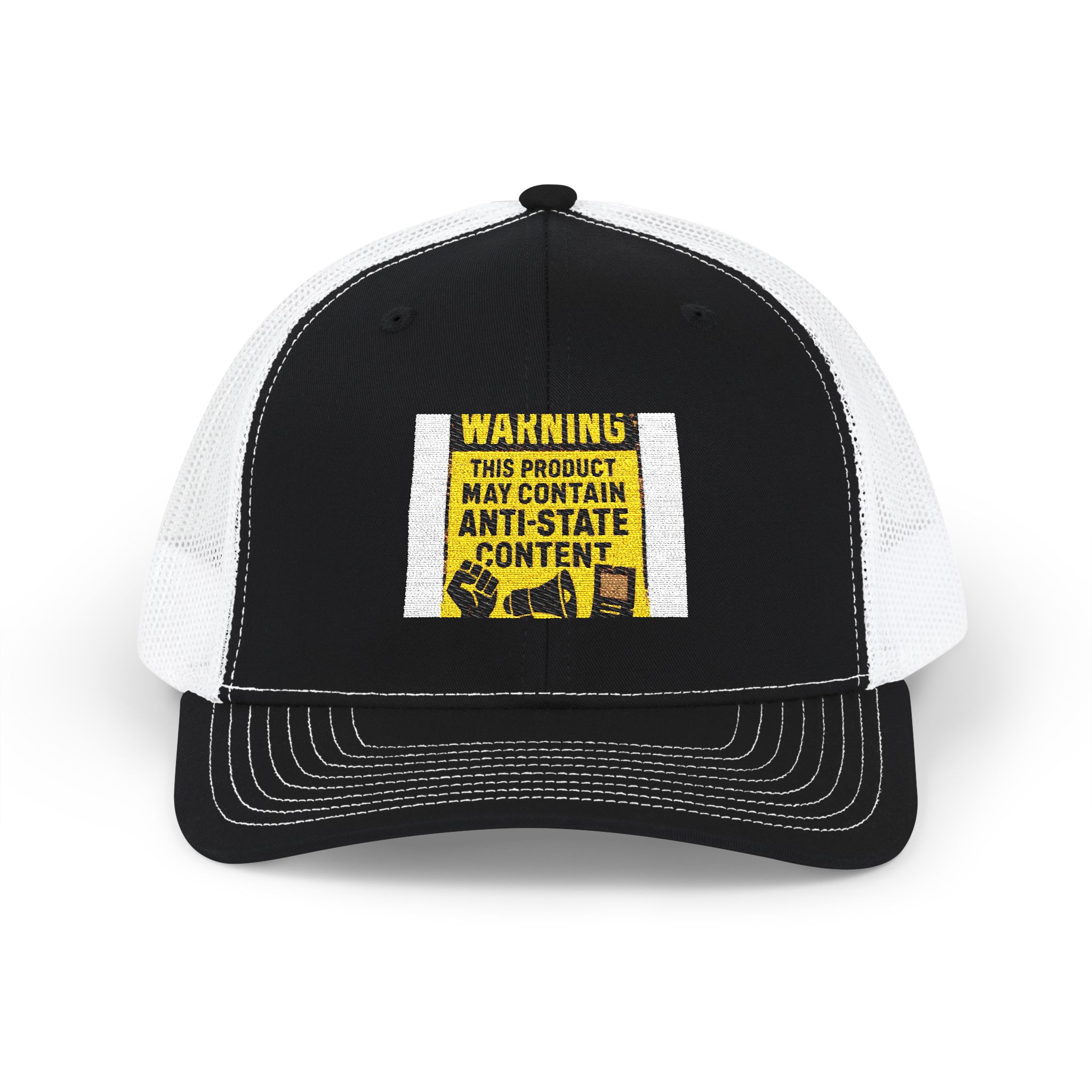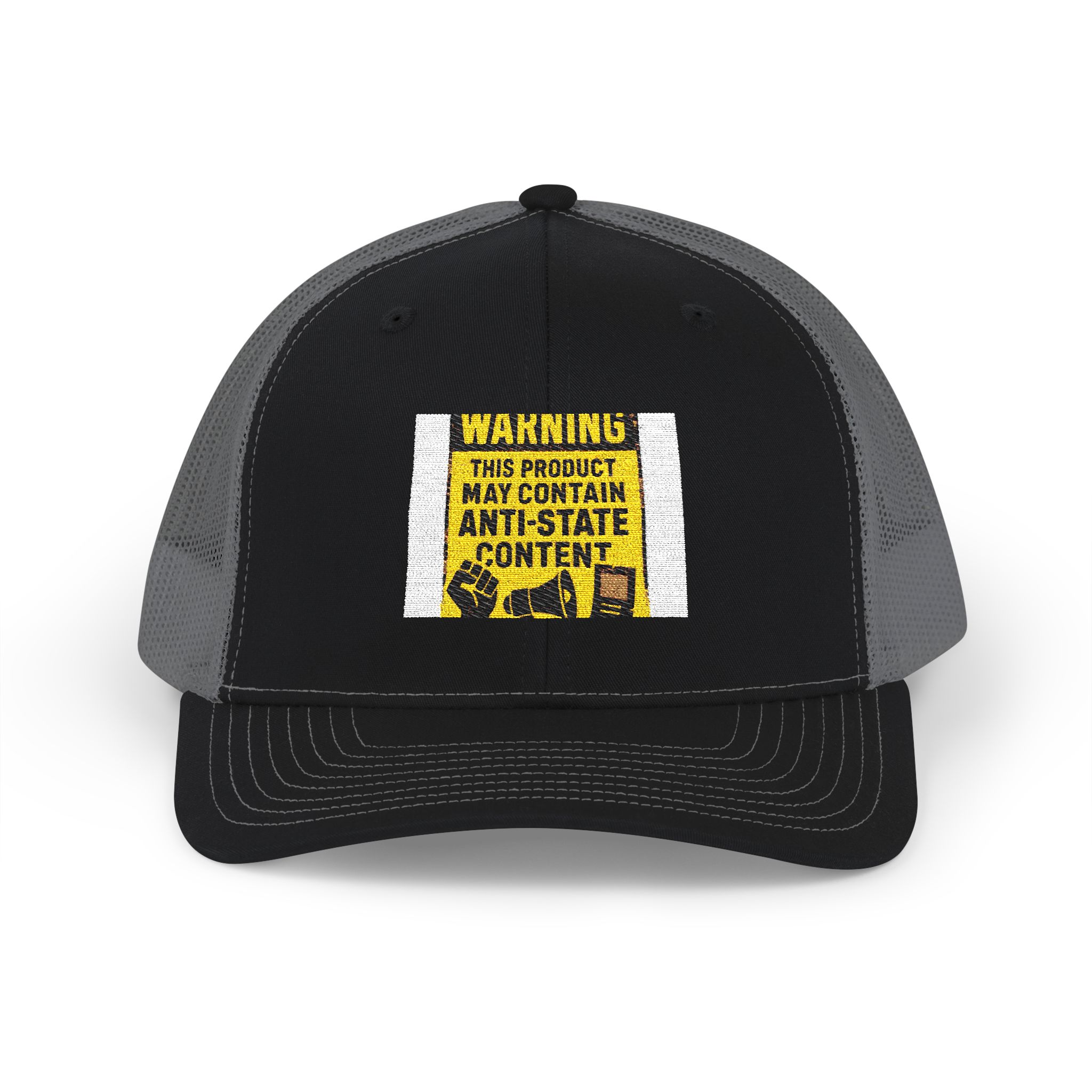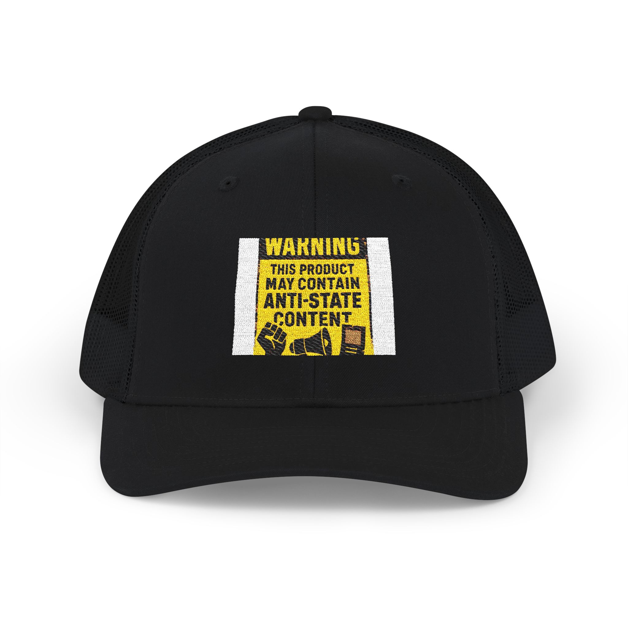 Be the first to review “Warning ‘May Contain Antistate Content’ Embroidered Trucker Cap”